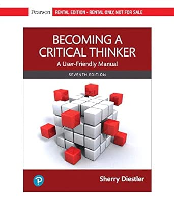 This print textbook is available for students to rent for their classes. The Pearson print rental program provides students with affordable access to learning materials, so they come to class ready to succeed. For courses in Critical Thinking Teach students how to think critically about the things that matter in their lives Becoming a Critical Thinker: A User-Friendly Manual trains students to become critical thinkers, thoughtful decision makers, and confident advocates for their beliefs. To this end, author Sherry Diestler guides readers to develop the skills they’ll need to successfully evaluate the many claims facing them as citizens, learners, consumers, and human beings ― and to become effective advocates for their beliefs. In addition to updated examples, the 7th Edition offers coverage of engaging contemporary topics ― such as how social media affects decision making and how marketers influence consumers ― that will resonate with today’s students.n nnPlease note that by purchasing this product, you will only receive instructor resources related to the book. This product does not include the book itself.nnFormat: Multiple Formats | Language: English | Edition: 7 | Publisher: Pearson